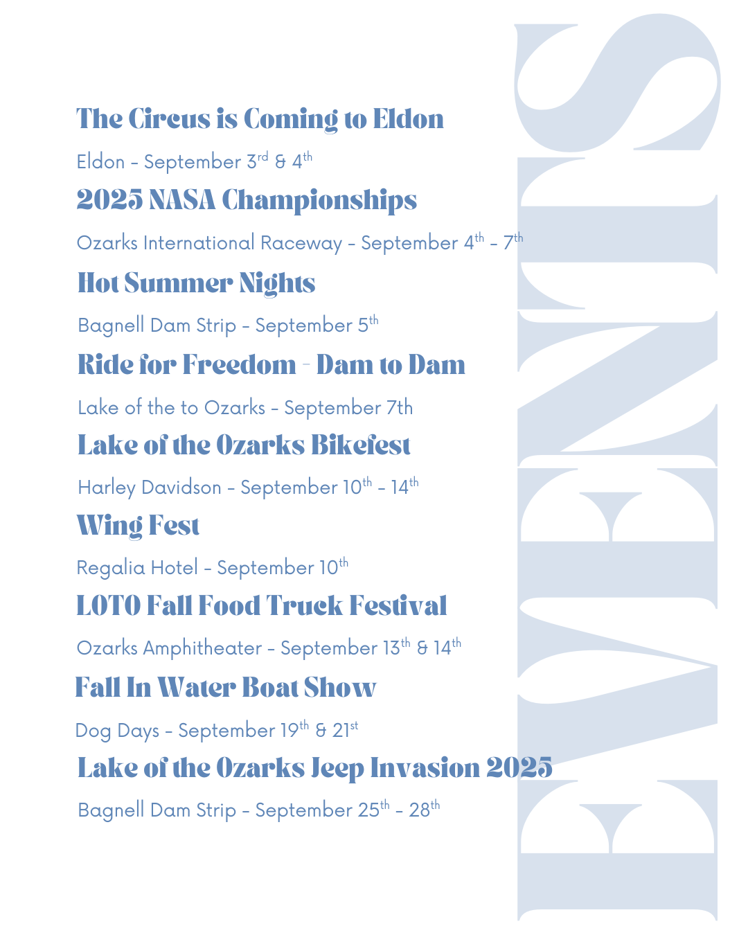September at the Lake of the Ozarks is the perfect mix of lake life and fall energy. Whether you’re revving your engine for Bikefest, honoring local heroes during Ride for Freedom – Dam to Dam, or winding down summer with boat shows, live music, and cozy nights on the water, there’s something for everyone this month.